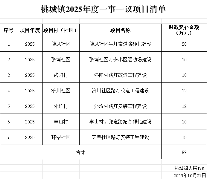 桃城鎮2025年度一事一議項目清單